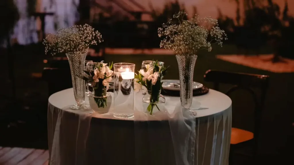 Velas, luz indireta, iluminação quente e pontos de destaque ajudam a criar uma atmosfera sofisticada e intimista. A iluminação certa transforma completamente a percepção do espaço, especialmente em cerimônias ao entardecer ou à noite.